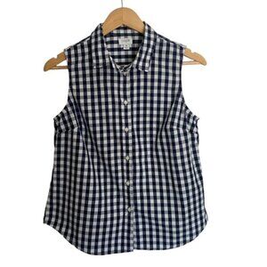 J. Crew Navy & White Gingham Sleeveless Button Down Top Medium