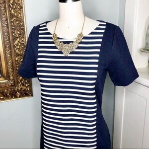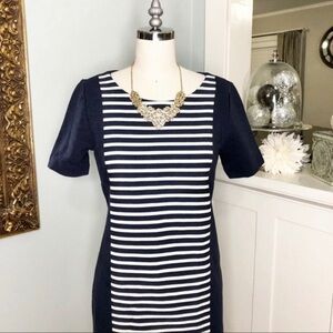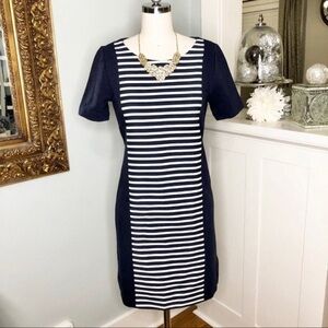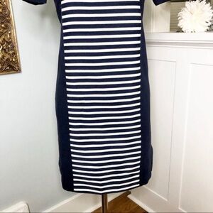 J. Crew Striped Navy & Cream Shift Dress. Thick and stretchy material with a full zipper in back. New without tags. Size 0.