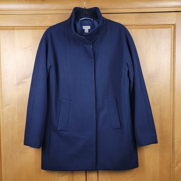 J. Crew Navy Wool Blend Single Breasted Button Front Short Coat - 6