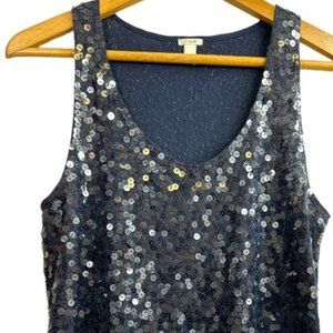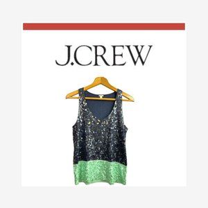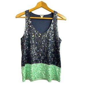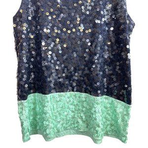 J. Crew Navy and Mint Cotton and Silk Sequin Top, Women's size Small