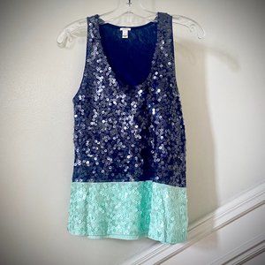 J. Crew Navy and Mint Sequin Tank Top