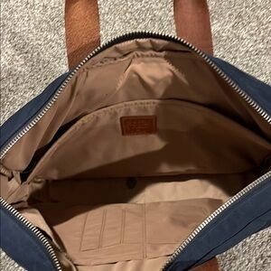 J. Crew Navy and Tan Briefcase