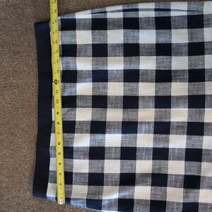 Chic pencil skirt with a navy and white checkered pattern. Perfect for versatile styling. Ideal for both casual and formal settings.
