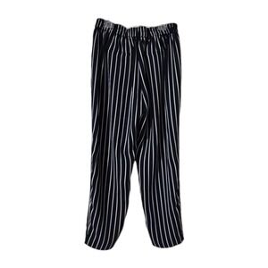 The J. Crew Factory Navy and White Striped Jamie Pants with Elastic Waistband are a stylish and versatile addition to any woman's wardrobe. These relaxed fit pants feature a high rise waist and a tapered leg, making them flattering and comfortable for all-day wear. The navy and white striped pattern adds a touch of nautical charm, perfect for casual outings or workwear during the warmer seasons. Made from polyester, these ankle-length pants are easy to care for and suitable for travel or everyday activities. Whether paired with a simple top for a preppy look or dressed up for a more formal occasion, these pants offer a classic and timeless style.