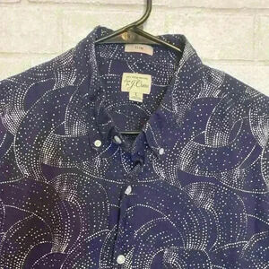 J Crew Navy print 100% cotton button down shirt size Large in Excellent pre owned condition