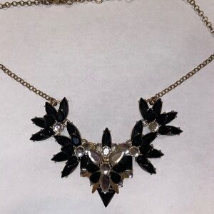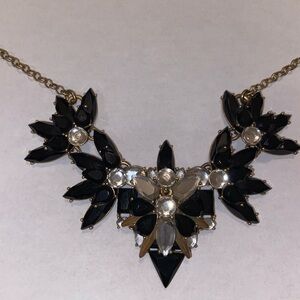 J Crew Necklace Antique Gold Tone Chain Statement Black Clear Glass Crystal