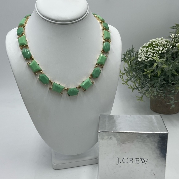 J. Crew Necklace Green Clear Rhinestone Gold Tone Statement Necklace