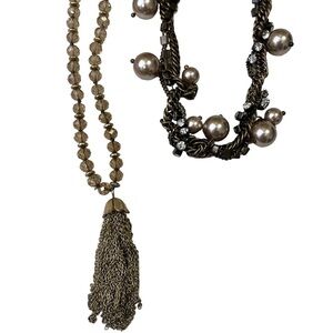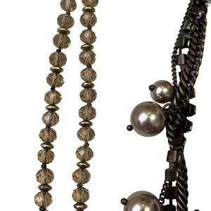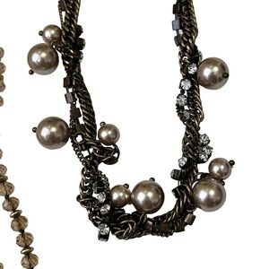 J Crew Necklaces Multi Strand Pearls Rhinestones Beads Tassels Antique Gold Look
