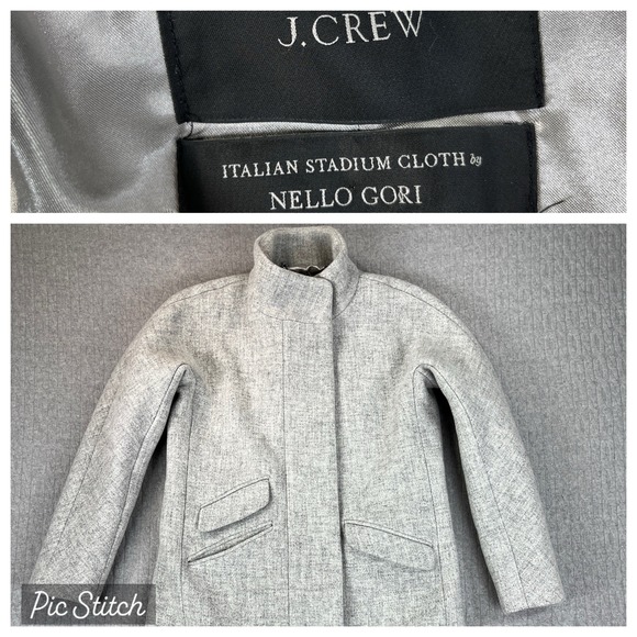 J. Crew Nello Gori Italian Stadium Cloth Pea Coat 00P Gray Wool Stand Collar