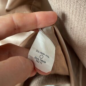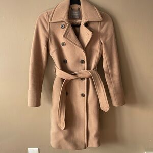 Stay stylish and warm with this elegant tan double-breasted coat. Perfect for any occasion.