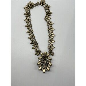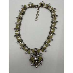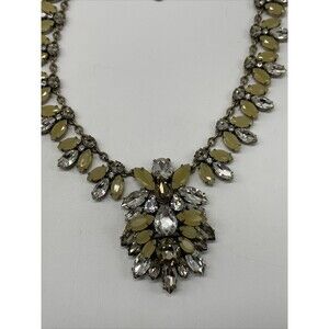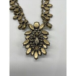 This statement necklace is absolutely stunning and very unique and classy. With neutral color stones that is great for fall season and will go with anything. Continuous all the way around crystals and rhinestones with a huge center pendant. This necklace will look beautiful with a button down shirt under your suit or with a silk blouse and jeans. Measuring 15 inches with a 2 inch extender. In excellent preowned condition. Comes from a smoke free home.