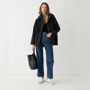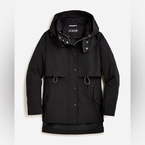 Meet your new windy-weather layer. With water-repellent fabric, a longer hem in the back for extra coverage (and splash protection), a flattering elastic bungee at the waist and a cute (and practical) hood with an extended collar, this jacket will have you looking forward to less-than-perfect weather. By buying cotton products from J.Crew, you're supporting our investment in Better Cotton's mission to help cotton communities survive and thrive while protecting and restoring the environment. This product is sourced through a system of mass balance and therefore may not contain Better Cotton.