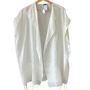J. Crew New w Tag White Lightweight Beach Poncho in Eyelet. Linen Blend