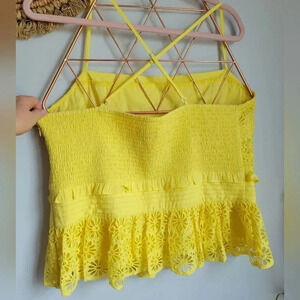 J. Crew, New, Yellow Cross Back Smocked Waist Peplum Eyelet Top, Size XL