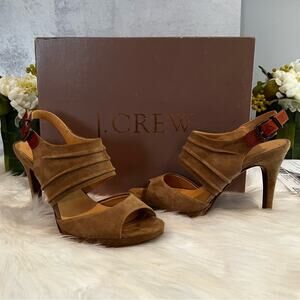J. Crew Nicola Platform Suede Slingback Heels Toffee Sz 5.5 with box