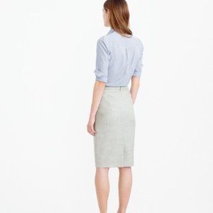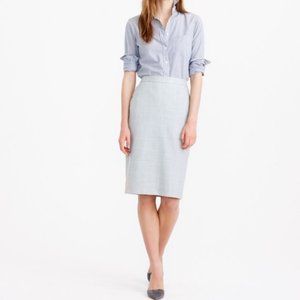 J Crew classic No. 2 pencil skirt in light heathered grey. This does NOT have tags but has only been worn a few times. I love it but sadly it's not my size. Needs a loving home!