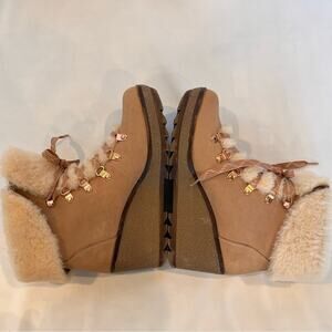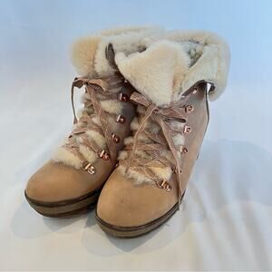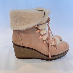 J. Crew Nordic Wedge Leather Fur-lined Bootie Subtle Blush Pink Sz 8