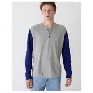 J Crew Oarsman Thermal Henley Top Baseball Men’s Medium Blue Gray Waffleknit
