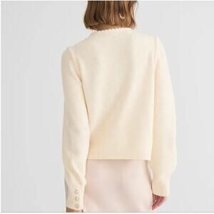 J. Crew Odette Lady Ivory Boucle Cardigan, Crystal Buttons, Women's Size M