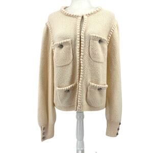 J. Crew Women's M Odette Lady Ivory Boucle Cardigan Crystal Buttons Pockets