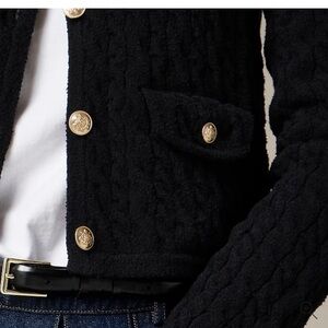 J. Crew Odette cable knit lady jacket sweater in black with gold buttons. Small