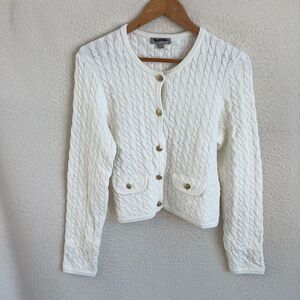 J Crew Odette cable-knit sweater lady jacket in cotton-blend bouclé Medium Ivory