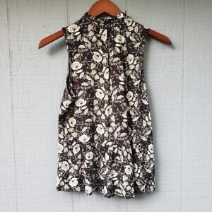 Adorable floral print peplum 'ruffled' tank from J Crew. Black and off white/grey pattern. V neckline with tassels. Flirty and flowy through the body. Size XS - please see measurement photos for size reference prior to purchase.Good condition with minimal signs of wear. From Spring 2018.