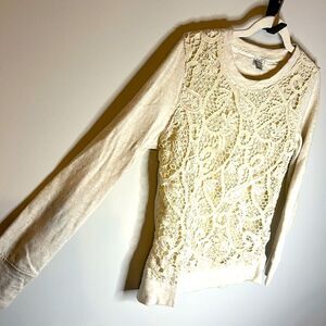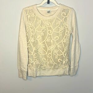 J. Crew Off White Lacy Front Long Sleeve T-Shirt S