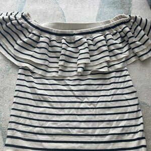 J. Crew off-the-shoulder blue & white striped ruffle top. Good condition, rarely worn.