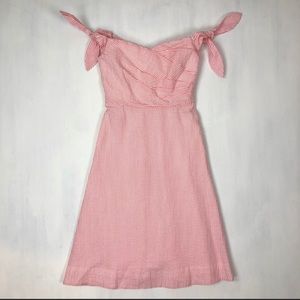 “An A-line silhouette + off-the-shoulder ties + classic seersucker = the dress of the season for brunches, showers, beach bashes and more!”