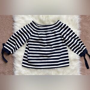 J. Crew Off the Shoulder Striped Top Nautical Blue White