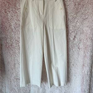 Chic off-white trousers with sleek design. Ideal for versatile styling. More ivory than white in color.