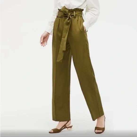 J. Crew Olive Green Drapey Paper Bag Wide Leg Pants size 12