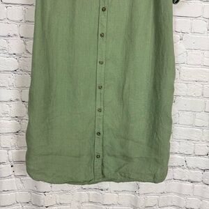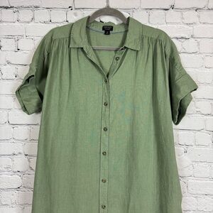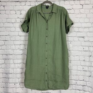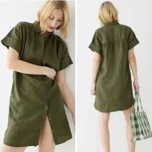 Chic olive green shirt dress. Short sleeves. Button-up front. Relaxed fit.