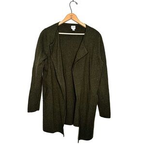 J. Crew | Olive Green Vanessa Collarless Open Cardigan Sweater Size Medium