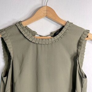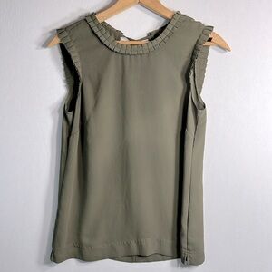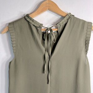J. Crew Olive Ruffle Crew Neck Sleeveless Tie Back Blouse size 00