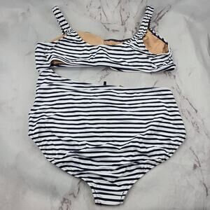 J Crew One Piece 24 3X Blue Striped Square Neck Cut Out Bikini Swim Suit
