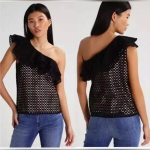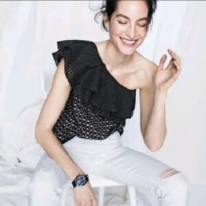 J. Crew One Shoulder Eyelet Top- Black- Size 0