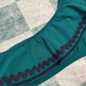 Ruffles and rickrack trim This one-shoulder bikini top just took your pool-slash-beach game to off-the-charts cute. The textured piqué fabric of this bikini top screams summer.