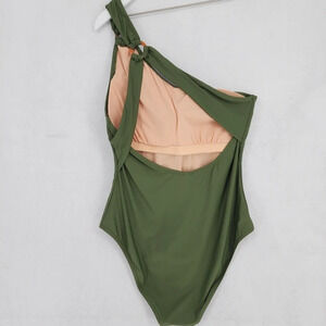 J. Crew One-shoulder Swimsuit with Tortoise Ring in Safari Green