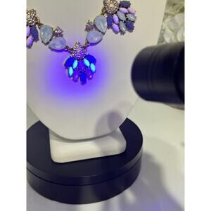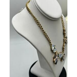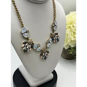 J. Crew Opal Gray Acrylic Gold Tone Pink Clear Rhinestone Bib Statement Necklace