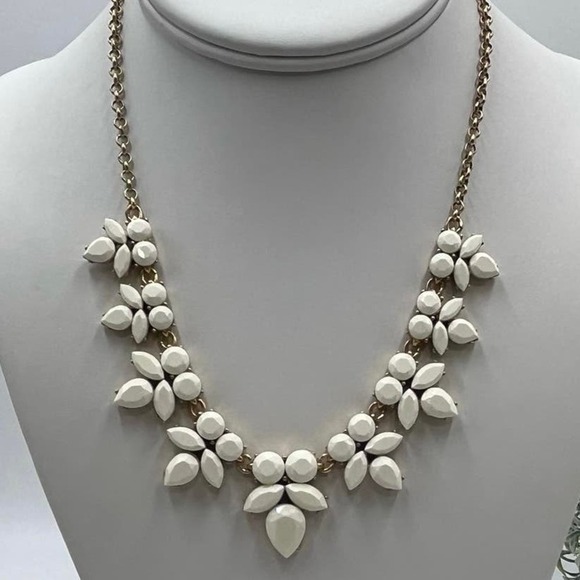* J. Crew Opaque Faceted White Prong Set Rhinestone Gold Tone Necklace