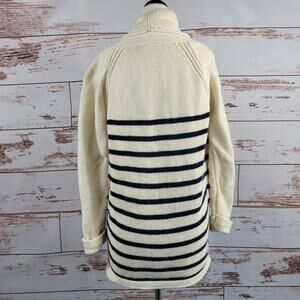 J. Crew cotton/merino wool blend cream and navy striped open oversized cardigan with pockets. Thick and cozy. Very good preowned condition, Size XS,