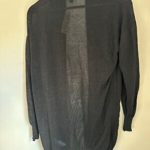 Lightweight open cardigan sweater in a breathable linen blend, women’s size Medium. Classic open-front design in black, perfect for layering in spring, summer, or fall. Very lightweight and versatile — can be dressed up for work or worn casually. New with tags.