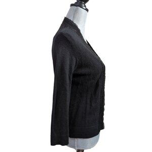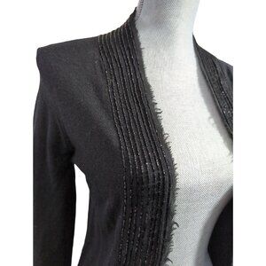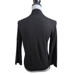 J Crew Open Front Cardigan Womens S Black Beaded Office Casual Wool Cashmere