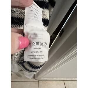 J Crew Open Knit Blue White Striped Wool Mohair Blend Sweater Tunic Sz M
