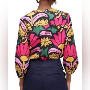 J Crew Open V-Neck Cotton Poplin Top Ratti Grandi Fiori Multicolor Top Size XS