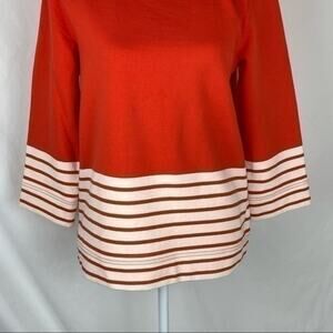 J Crew Orange Coastal Casual Striped Coastal Grandma Nautical Top NWOT