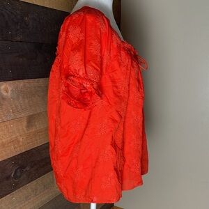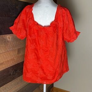 J. Crew Orange Eyelet Cotton Top Size Large