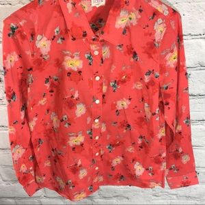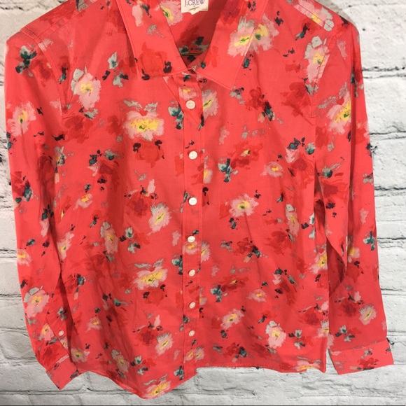 J Crew Orange Floral Button Up Shirt. Size Small. Approximate Measurements: Length: 72 cm, Sleeve Length: 63 cm, Bust: 96 cm, Waist: 90 cm.